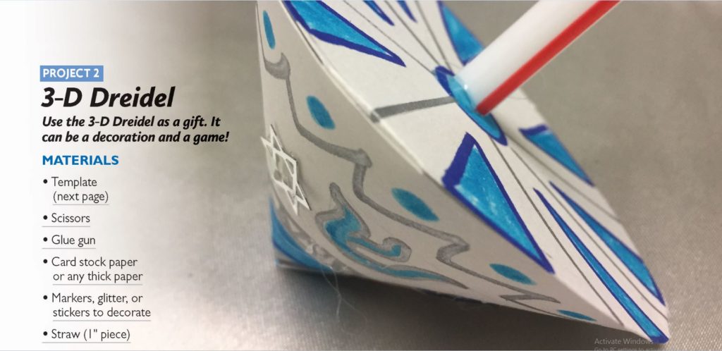 Chanukah is a great time for family projects. These three projects are easy, fun and can probably be done with materials you’ll find around your house. They were developed by art teacher Jacqueline Cabessa Redlich of Bader Hillel Academy in Fox Point. Our thanks to Jewish Community Education Planner Tziporah Altman-Shafer for her help with this, too.