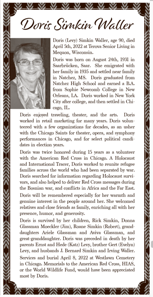 Graveside funeral service held April 25, 2022 at Agudas Achim Cemetery, Cudahy. Rabbi Noah Chertkoff officiated. Goodman-Bensman Whitefish Bay Funeral Home assisted the family. Memorial contributions to American Cancer Society appreciated.
