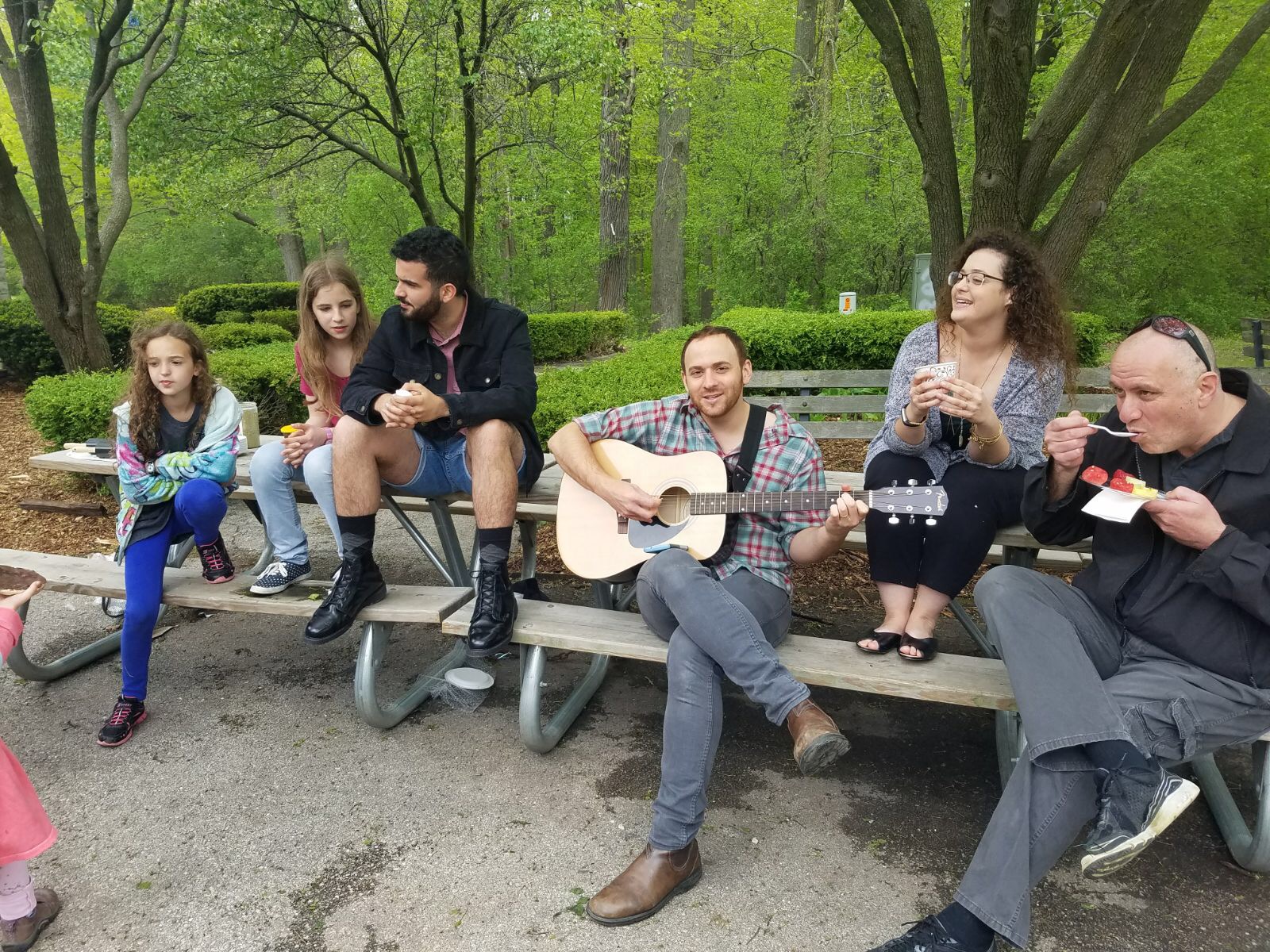 Lots of fun and singing at the Milwaukee Jewish Federation’s Israel Center Israel Picnic in May! Madison Shaliach Daniel Gil plays guitar, with Milwaukee Shin Shin Omer Brymok to his left and on his right, Pnina Ezra, the Israel Campus Fellow at Hillel Milwaukee. Submitted photo.